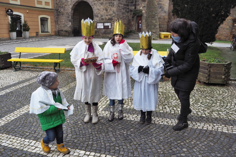 Tříkrálová sbírka v neděli před kostelem